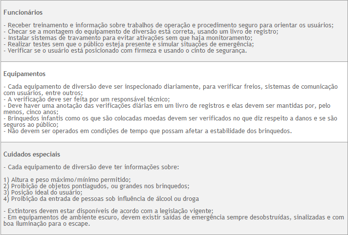 Associação cria normas para regular parques de diversão Veja algumas das medidas sugeridas pela Adibra (Associação das Empresas de Parques de Diversão do Brasil)